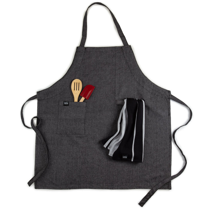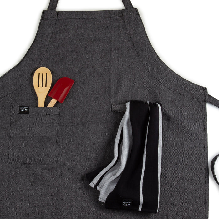 BergHOFF GEM 100% Cotton BBQ Apron, Black Denim Look