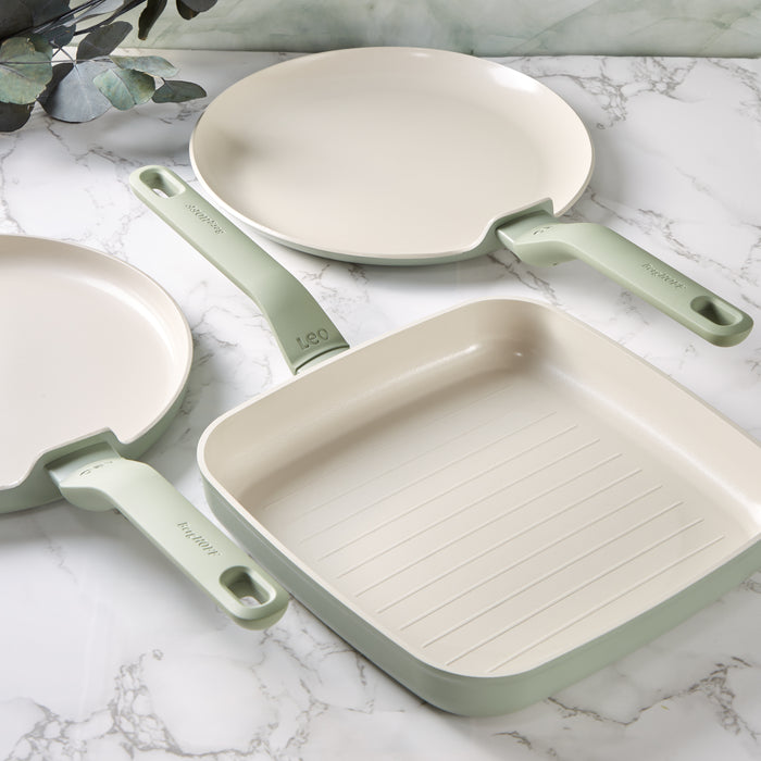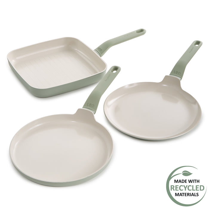 BergHOFF Balance 3Pc Nonstick Ceramic Specialty Cookware Set, Recycled Aluminum, Sage
