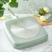 - Recycled Aluminum 11" Square Grill Pan with CeraGreen non-stick ceramic coating. The pan comes with a stay-cool soft touch handle for a safe, comfortable grip and a hanging loop that allows for easy storage and minimal kitchen space.