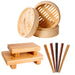 - Natural Bamboo steamer, 2x sushi trays, and 5 pairs of chopsticks