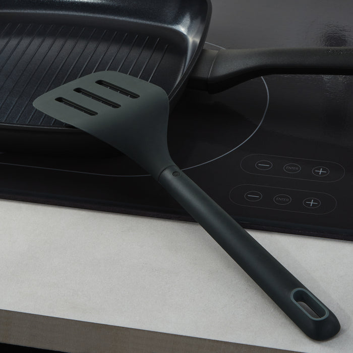 - Utilize the slotted turner for any flipping or turning task. Its slots allow excess oil or liquid to drain away, ensuring your dishes are perfectly cooked and presented. This turner is heat-resistant and gentle on non-stick surfaces, making it easy to flip and turn food without scratching the pans.