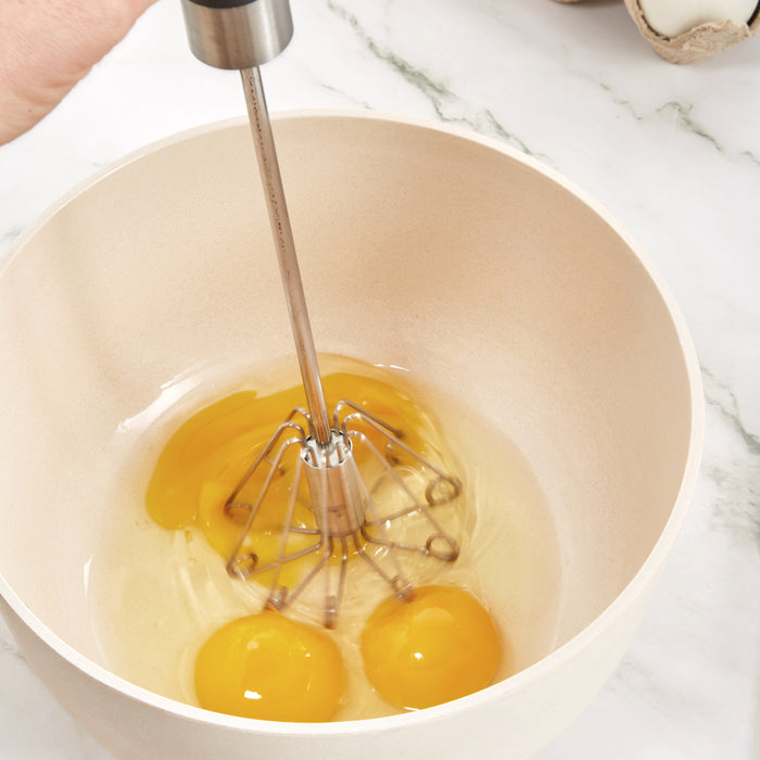 - Rotating mechanism helps mix ingredients quickly and evenly.