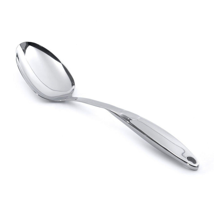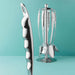 - Package includes: Soup Ladle, Skimmer, Slotted Turner, Pasta Server, Potato Masher, Serving Spoon, and Rack, Silver