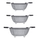 Effortlessly drain pasta, vegetables, and more with our durable colanders. Say goodbye to messy spills and burns, thanks to the raised footed base you can use the colander for serving and washing fruits and vegetables, draining, steaming and deep frying. Sturdy welded cross feet provide stability. 18/10 stainless steel provides durability and TPR covered handles are for a sure and safe grip. Set Includes: 7.75" strainer, 8.75" strainer, and 10" strainer.