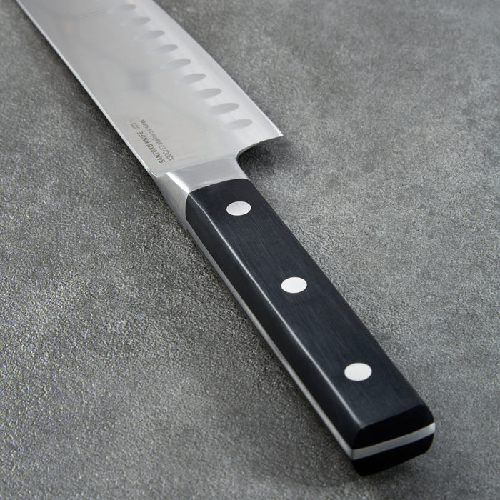 - 7" Santoku Knife is crafted with durable stainless steel blade and ergonomically designed, triple-riveted ABS handle.