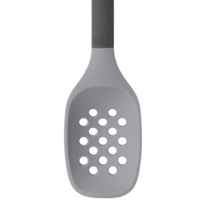 From pasta to peas, the Leo skimmer with silicone body is the perfect tool to skim and strain liquid from your pots and pans without scratching the delicate surface of your cookware. The soft-touch rubber handle ensures a comfortable grip and has a convenient loop so you can hang the skimmer from a hook alongside the other Leo utensils for easy access.