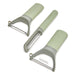 - Stainless steel Y-peeler with zester, Serrated Y-peeler, Straight peeler with soft-touch recycled PP handles, satin finish.