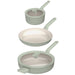 - Set includes recycled Aluminum 7" Saucepan, 10.25" Sauté pan (long handle), 9.5" fry pan, featuring non-stick, healthy CeraGreen ceramic coating with ergonomic soft-touch handles and 2x glass lids.