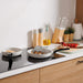 Leo Glints 2Pc fry pan set is tailor-made to assist in the preparation of either your breakfast in the morning or your evening meal at night. The recycled aluminum body for heat distribution and the playful colors to brighten up your kitchen are the perfect combination to start cooking your daily meals. Thanks to the high-quality CeraGreen, PTFE-Free, PFAS-free, non-toxic, non-stick coating, you need little to no oil for healthier cooking and makes the pan easy to clean. The glossy stay-cool handle ensures you to safely take the pan from the stove to the dinner table. On top of that, the frying pan can be used on any kind of stovetops, including Induction, Electric, Gas, Halogen, Downdraft, and vitro-ceramic cooktops. Cleaning is hassle-free, built to withstand heavy and frequent use. Handwash recommended. Package includes: 11" Frying Pan, 12.5" Frying Pan