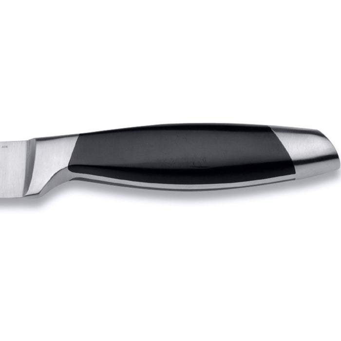 - Made from high quality stainless steel to resist stains and rust with proper care. Sleek lines, full tang, seamless curves with ergonomic ABS handles. Durable construction for a lifetime of use. Beautiful brushed stainless steel finish with impact resistant black ABS handles.