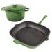BergHOFF Neo 3pc Cast Iron Cookware Set, Grill Pan & Round Dutch Oven, Green