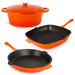 BergHOFF Neo 4pc Cast Iron Cookware Set, Grill Pan, Fry Pan & Oval Dutch Oven, Orange