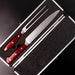 Pakka wood 7pc Steak knife and carving set is made of durable high-quality 18/10 stainless steel that is absolutely indestructible and corrosion resistant. The highly polished surface is hard wearing, thick, easy to clean and hygienic. The 4x steak knives are designed with a sharp serrated edge for effortless slicing through meats and other foods. The carving fork and carving knife are perfect for slicing and serving roasts, poultry, and other large cuts of meat. The knives are designed with ergonomic, triple-riveted handles that provide a comfortable and secure grip, reducing hand fatigue during extended use. The high-quality construction, ergonomic handles, and included storage case make this set a practical and stylish choice for everyday meal preparation and special occasions alike. Set includes: 4x Steak knives 4.75", 6" Carving fork and 8" Carving knife, 14" x 2" Aluminum storage case.