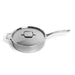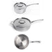 - Set includes high-quality tri-ply 18/10 stainless steel 10" Fry pan, 8" Saucepan 3.3qt., 11" Sauté Pan 5.2qt., and 2x stainless steel lids, featuring ergonomic, comfort grip handles with mirror finish.